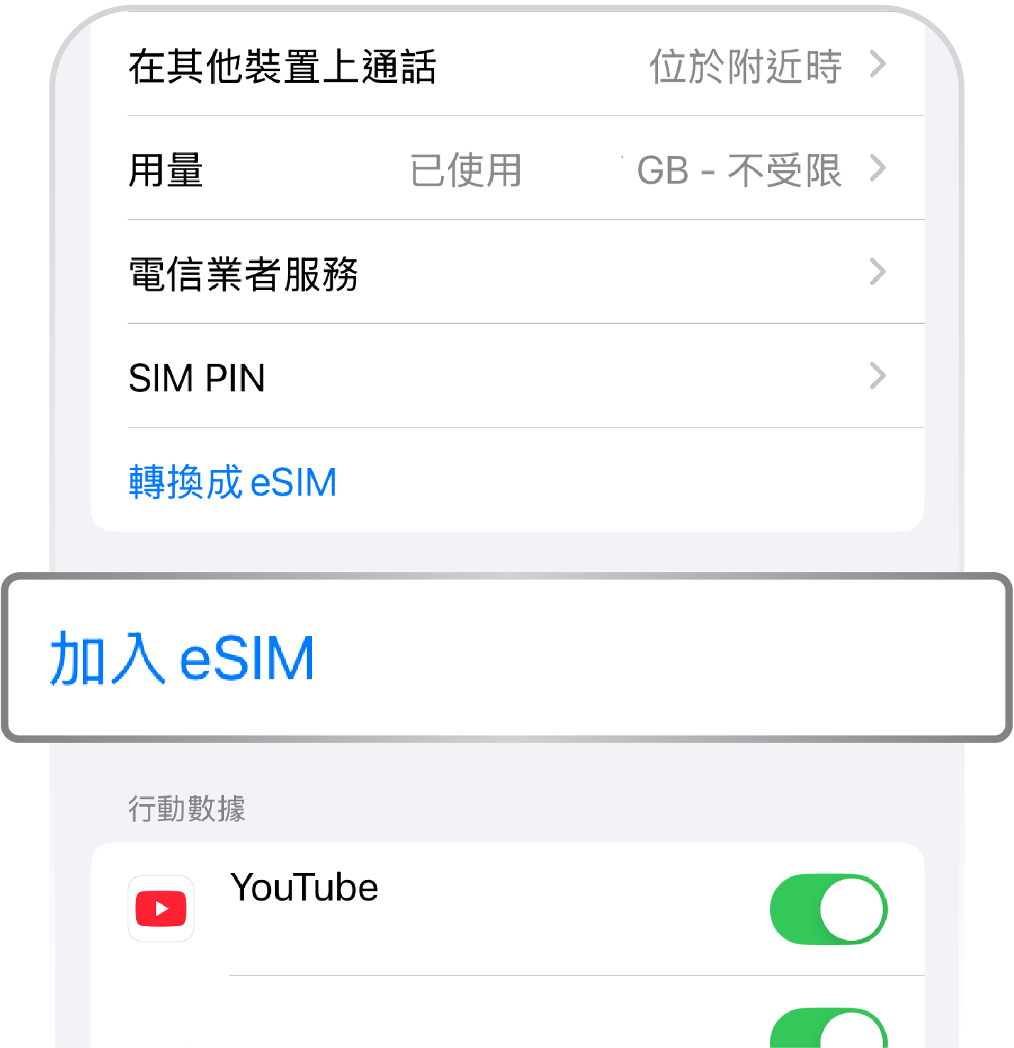 - · 為確保eSIM順利使用,建議將設備軟體更新到最新版本。